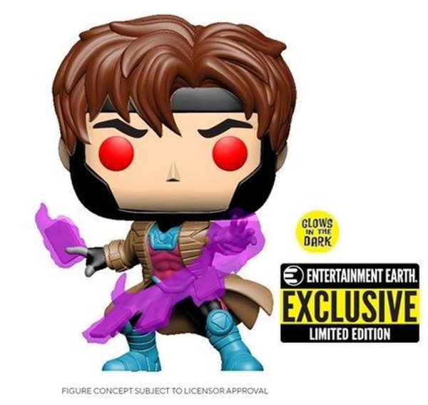 Entertainment Earth Exclusive! This is one powerful mutant! Based on classic 1990s comics, this X-Men Gambit Glow-in-the-Dark Pop! Vinyl Figure - Entertainment Earth Exclusive features Remy Etienne LeBeau, aka Gambit, demonstrating his powers with his famous kinetically charged card-throwing ability.